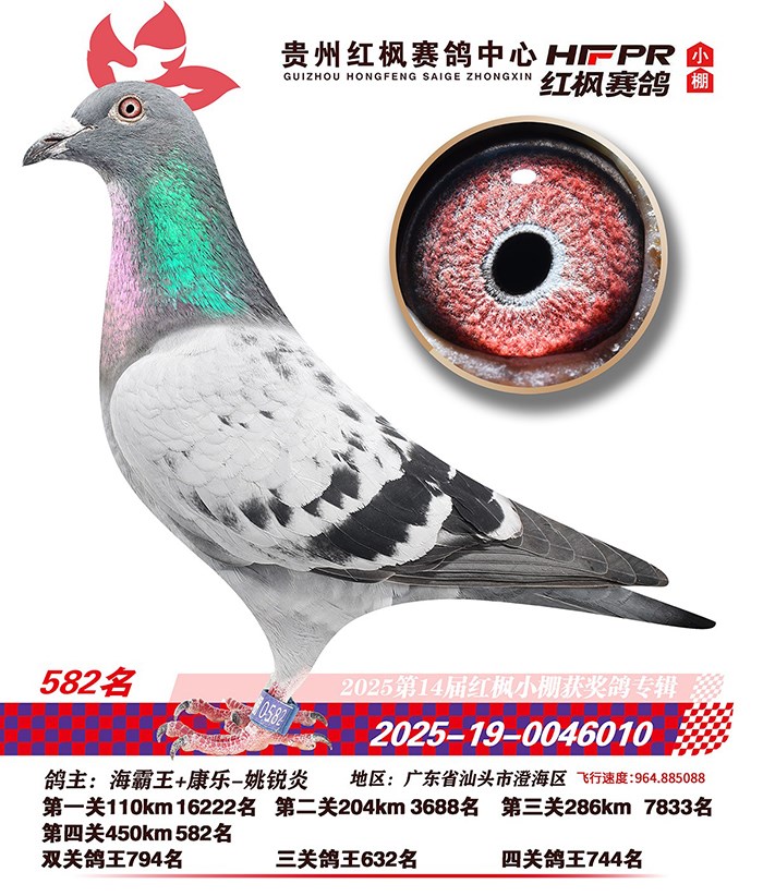 父亲 C21-3439 | 子代 25年秋贵州红枫小棚450公里决赛 12163羽 582名