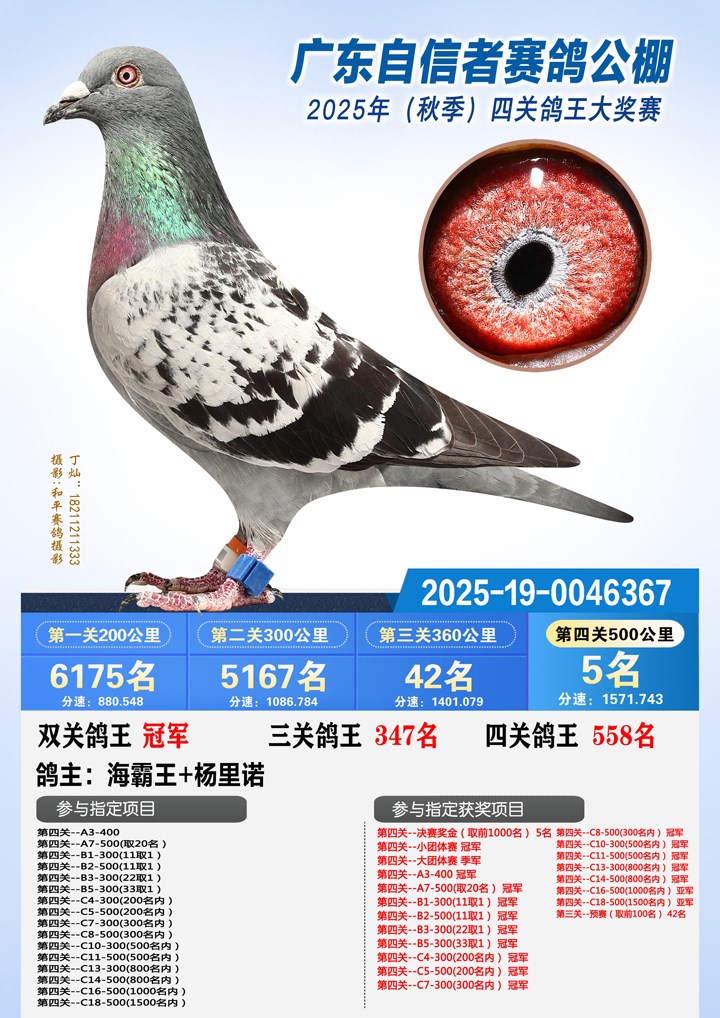 25年秋广东自信者公棚500公里决赛C14-500 冠军 25年秋广东自信者公棚500公里决赛C5-500 冠军 25年秋广东自信者公棚500公里决赛B5-500(11取1) 冠军 25年秋广东自信者公棚500公里决赛C7-300 冠军 25年秋广东自信者公棚500公里决赛B5-300(33取1) 冠军 25年秋广东自信者公棚500公里决赛C13-300 冠军 25年秋广东自信者公棚500公里决赛A3-400 冠军 25年秋广东自信者公棚500公里决赛C11-500 冠军 25年秋广东自信者公棚500公里决赛B1-300(11取1) 冠军 25年秋广东自信者公棚500公里决赛C10-300 冠军 25年秋广东自信者公棚500公里决赛B3-300(22取1) 冠军 25年秋广东自信者公棚500公里决赛C8-500 冠军 25年秋广东自信者公棚500公里决赛小团体 冠军 25年秋广东自信者公棚500公里决赛C4-300 冠军 25年秋广东自信者公棚500公里决赛A7-500 冠军 25年秋广东自信者公棚500公里双关鸽王冠军 25年秋广东自信者公棚500公里决赛C18-500 亚军 25年秋广东自信者公棚500公里决赛C16-500 亚军 25年秋广东自信者公棚500公里决赛大团体 季军 25年秋广东自信者公棚500公里决赛 6029羽 5名 25年秋广东自信者公棚355公里预赛 6695羽 42名 孙代 25年秋广东海翔公棚500公里决赛 10519羽 208名