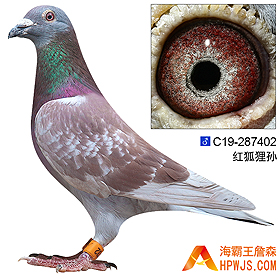 | 曾祖父 C09-134538 | 子代 15年秋广东浓翔公棚500公里决赛 2728羽 53名 孙代 18年秋广州浩羽(黄埔)公棚300公里速度赛 4221羽 季军 18年秋广州浩羽(黄埔)公棚360公里预赛 3697羽 188名 18年秋广州浩羽(黄埔)公棚200公里热身赛 4611羽 347名 18年秋广州浩羽(黄埔)公棚360公里预赛平分300元/800元/1500元 入赏