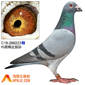 | 外祖母 C10-316699 | 孙代 21年秋广东汕头龙湖公棚决赛双羽赛1000 亚军 21年秋广东汕头龙湖公棚决赛单羽赛A2大家乐500 54名 21年秋广东汕头龙湖公棚决赛单羽赛A1大家乐300 95名 21年秋广东汕头龙湖公棚485公里决赛 3277羽 245名 21年秋贵州红枫赛鸽中心小棚450公里决赛 5140羽 322名 23年秋广东汕头龙湖公棚400公里预赛单羽养训技能赛A1=300 入赏