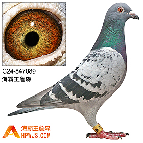 | 曾外祖父 B89-6727919 | 本身 1990-01年元月任詹森兄弟要角种公鸽11年 子代 詹森兄弟舍内基础第二配对种公要角,1998年-08年任用中 孙代 03年启用任种,04年第二配对种母 詹森清舍拍卖种鸽 第五届海霸王专棚赛第1关300公里10名