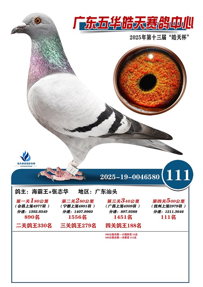 | 祖母 C15-264345 | 孙代 25年秋广东五华皓天公棚480公里决赛小团体 14名 25年秋广东五华皓天公棚480公里决赛 2979羽 111名