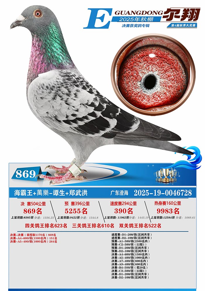 父亲 C22-149289 | 子代 25年秋广东尔翔公棚500公里决赛A4-600 入赏 25年秋广东尔翔公棚500公里决赛A5-400 入赏 25年秋广东尔翔公棚500公里决赛 8385羽 869名